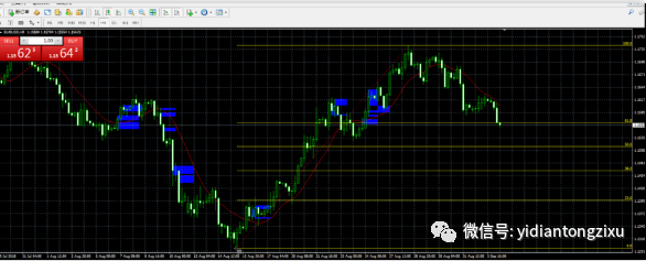 如果回调至0.382和0.5线之间的区域就遇到比较强劲的支撑,只要价格始终运行在0.382和0.5线之间的区域,就表明此前价格从高位的回调整理。